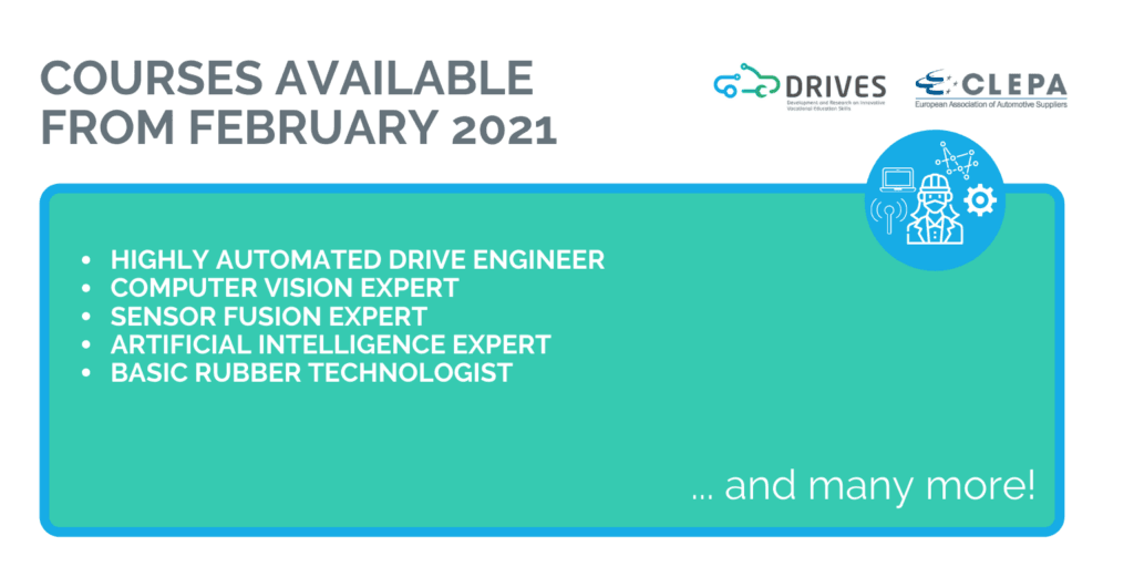 Having identified reskilling and upskilling needs stemming from the automotive sector, taking into account new mobility dynamics and industrial transformations, the EU-funded project DRIVES created an online Learning Platform. We invite you check out the new courses available from February 2021.